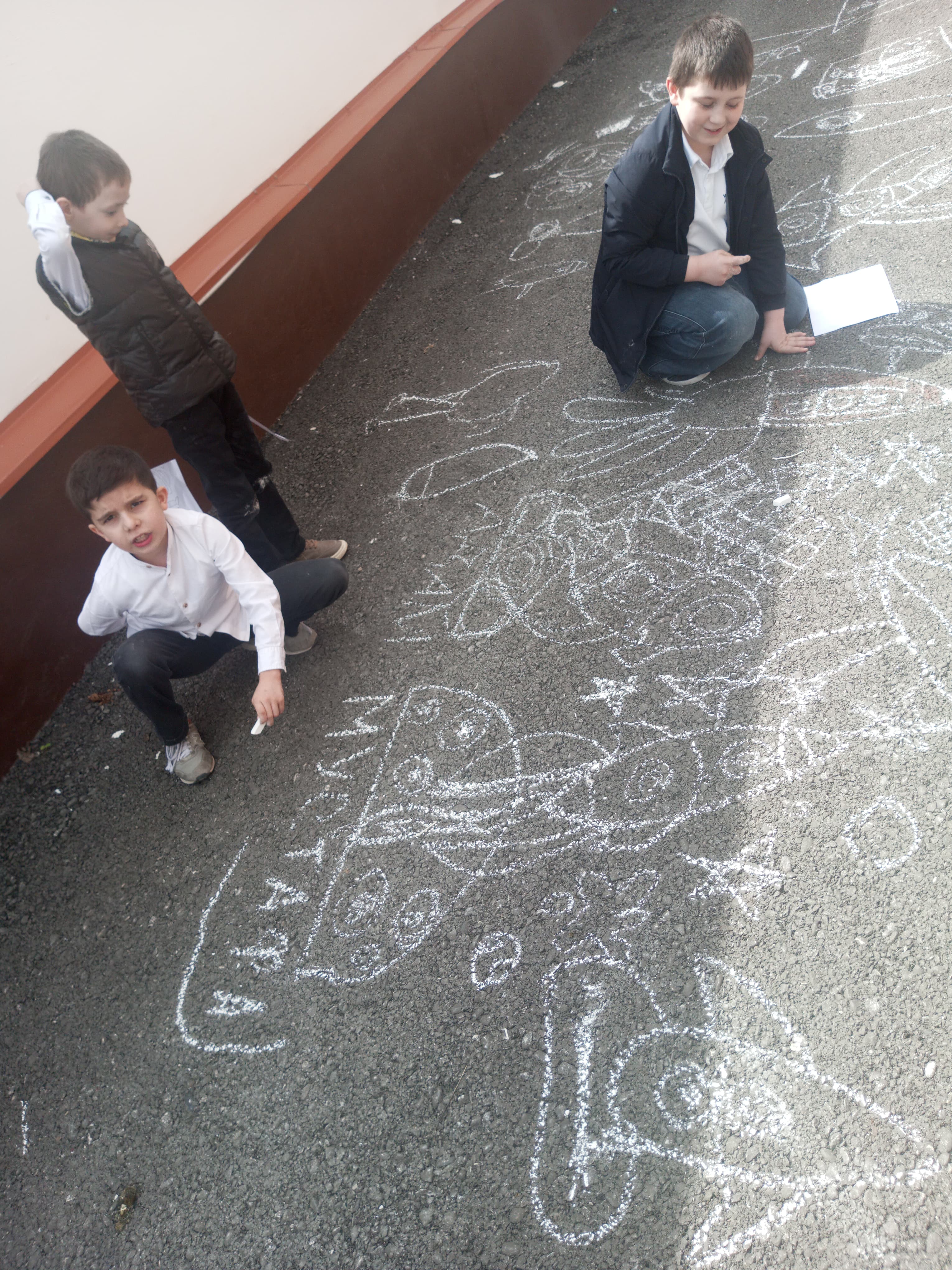 Ребята с большим увлечением играли цветными мелками, и вскоре асфальт на территории гимназии покрылся яркими рисунками. В них дети изображали ракету, небо со звездами, нарисовали космонавта. Детское творчество в технике коллективного рисунка мелом на асфальте позволяет не только проявить творческие способности, но зарядиться хорошим настроением и радостью от собственных «шедевров». С днем космонавтики!
