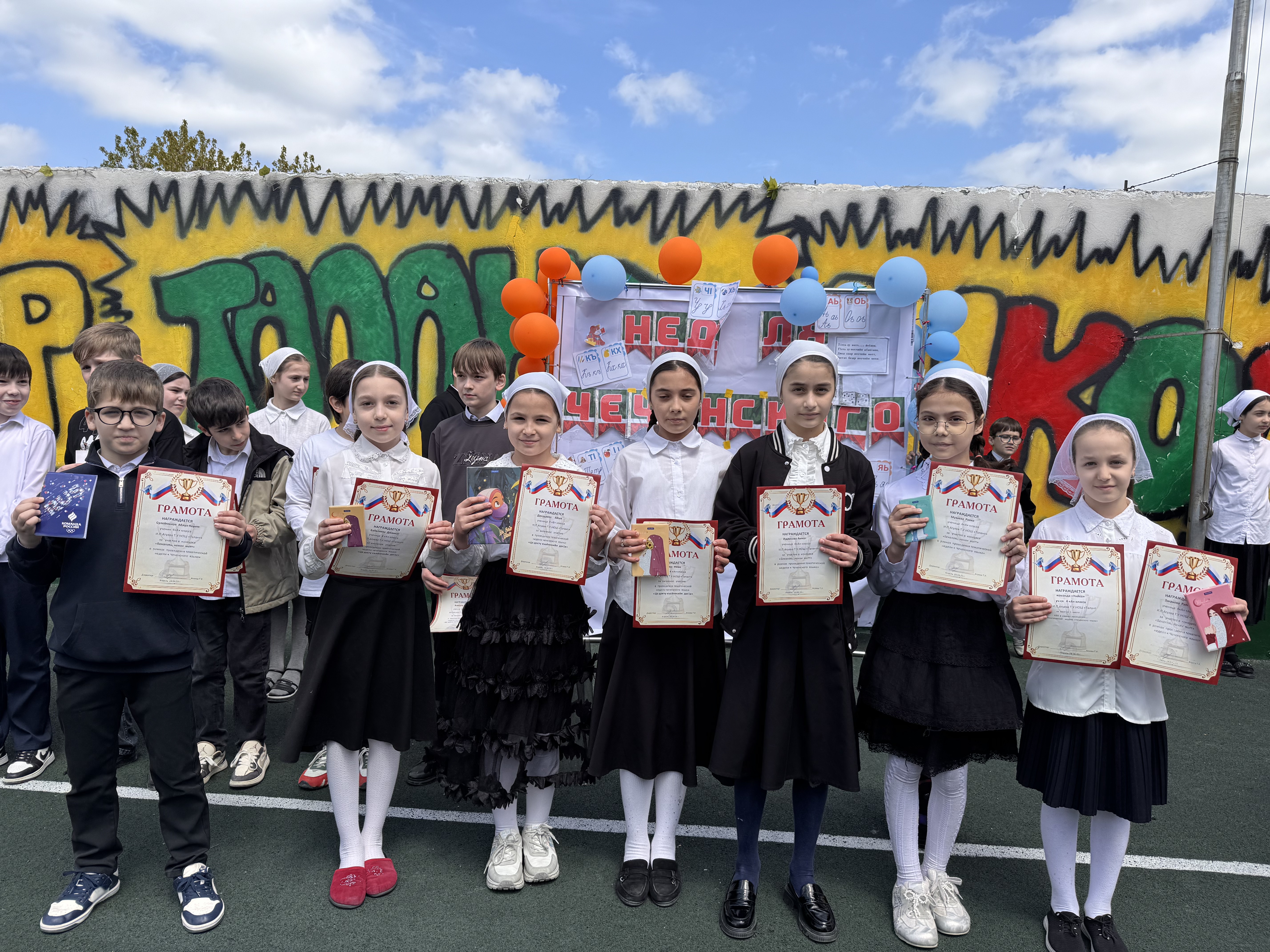 🎉Сегодня, в рамках недели чеченского языка, прошло награждение участников. Линейка началась с торжественного подъёма российского и чеченского флагов🎉